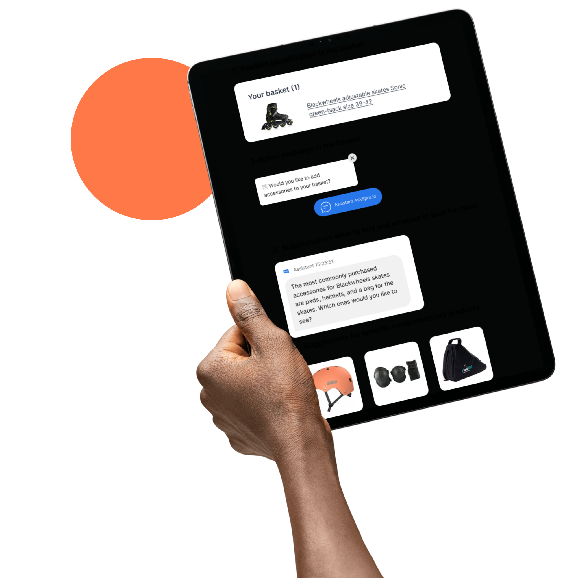 Traditional support bots handle simple requests. AskSpot goes further - helping customers discover products, compare options, and complete their purchase directly in chat.